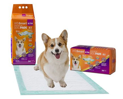 WizSmart Pads aren't like other training pads made with just paper layers. We use a propriety blend of upcycled baby diaper materials to create a soft, quick drying pad dogs love.